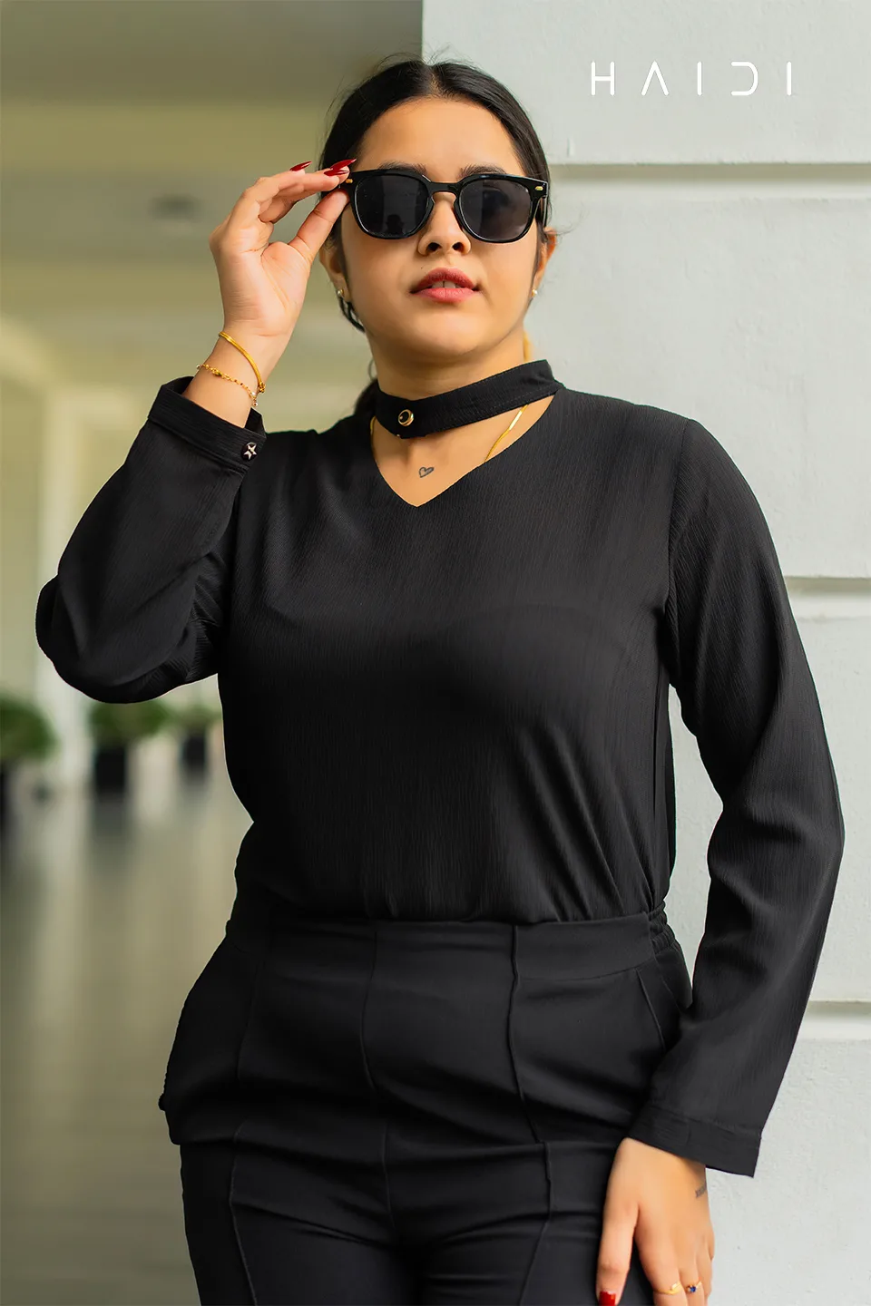Office-wear Blouse – Black Neck Band Blouse